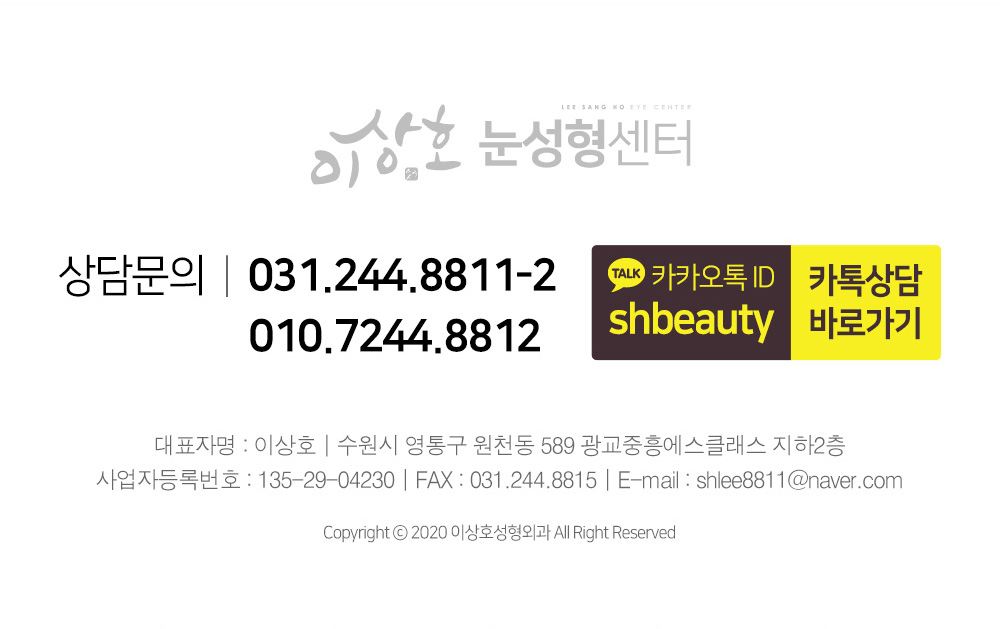 하안검 수술 시 피부와 근육을 과도하게 절제했거나 혹은 눈 내외인대의 고정력이 약해져서 눈 안쪽의 붉은 점막이 보이는 안검외반증 증상을 호소하는 분들이 많습니다. 안검외반증 걱정 없는 이상호성형외과의 하안검성형술, 어떻게 진행될까요? 수원성형외과 후기 많은 곳, 이상호성형외과 이상호 원장님이 하안검성형술에 대해 자세히 설명해 주셨습니다. 영상을 통해 자세히 확인해 보세요!